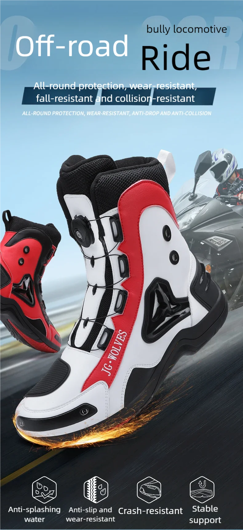 Motorcycle boots four seasons high-top outdoor riding boots fashion protective motorcycle shoes plus size off-road cycling shoes